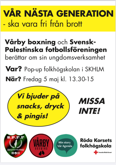 Kawyan och Gabi är deltagare på Röda Korsets folkhögskola och drev ett förändringsarbete under våren 2023. Kawyan och Gabis grupp arbetade förebyggande mot att ungdomar i lokalområdet skulle exponeras för våld och brottslighet. De fokuserade på att stärka samarbetet mellan ungdomar och två lokala sportföreningar i Skärholmen, Vårby boxning och SPFF(Svensk-Palestinska Fotbolls Förbundet).
