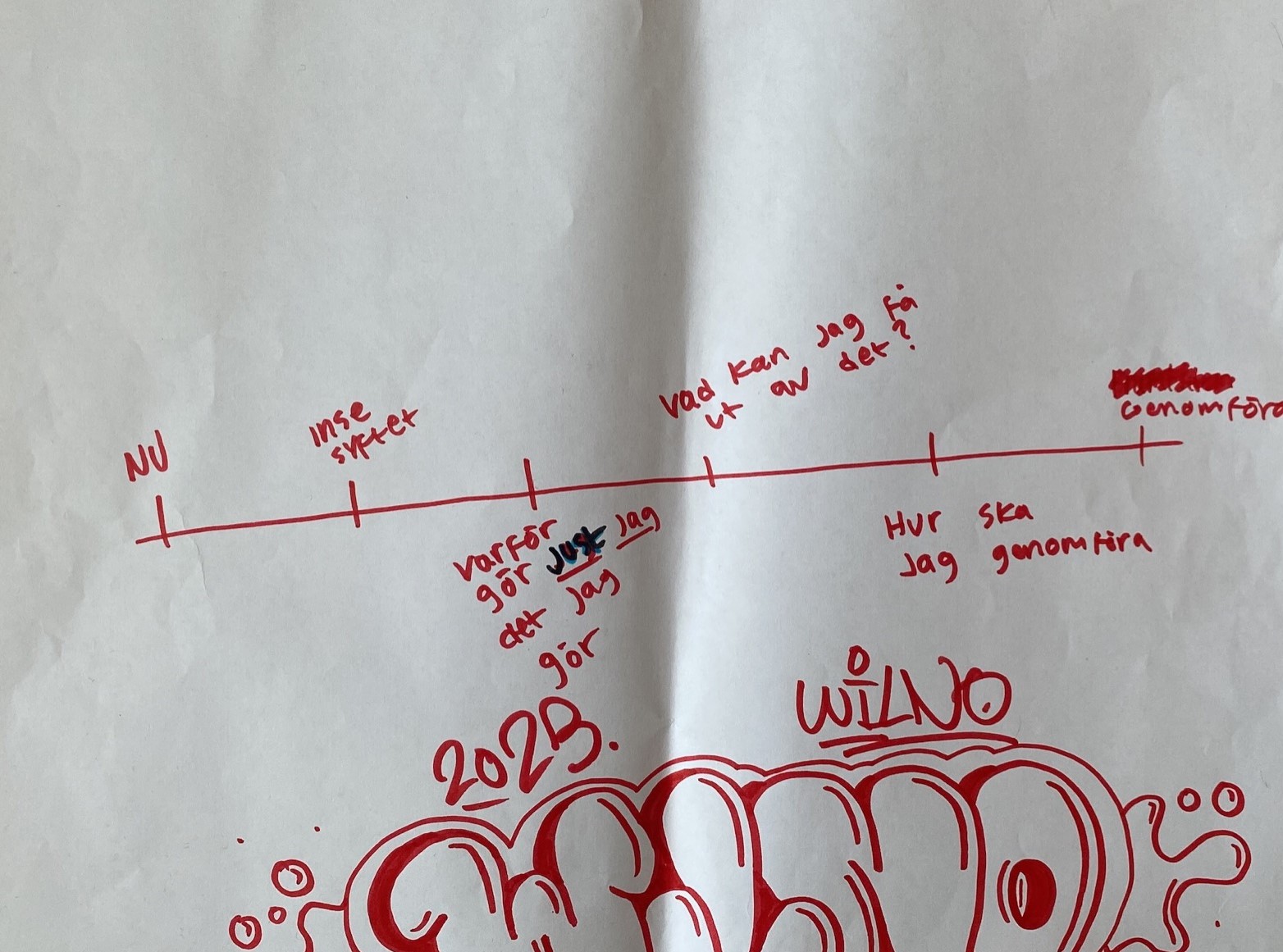 Redovisa tidslinjerna i mindre grupper, låt deltagarna berätta för varandra vad de har skapat sin framtidslinje kring.