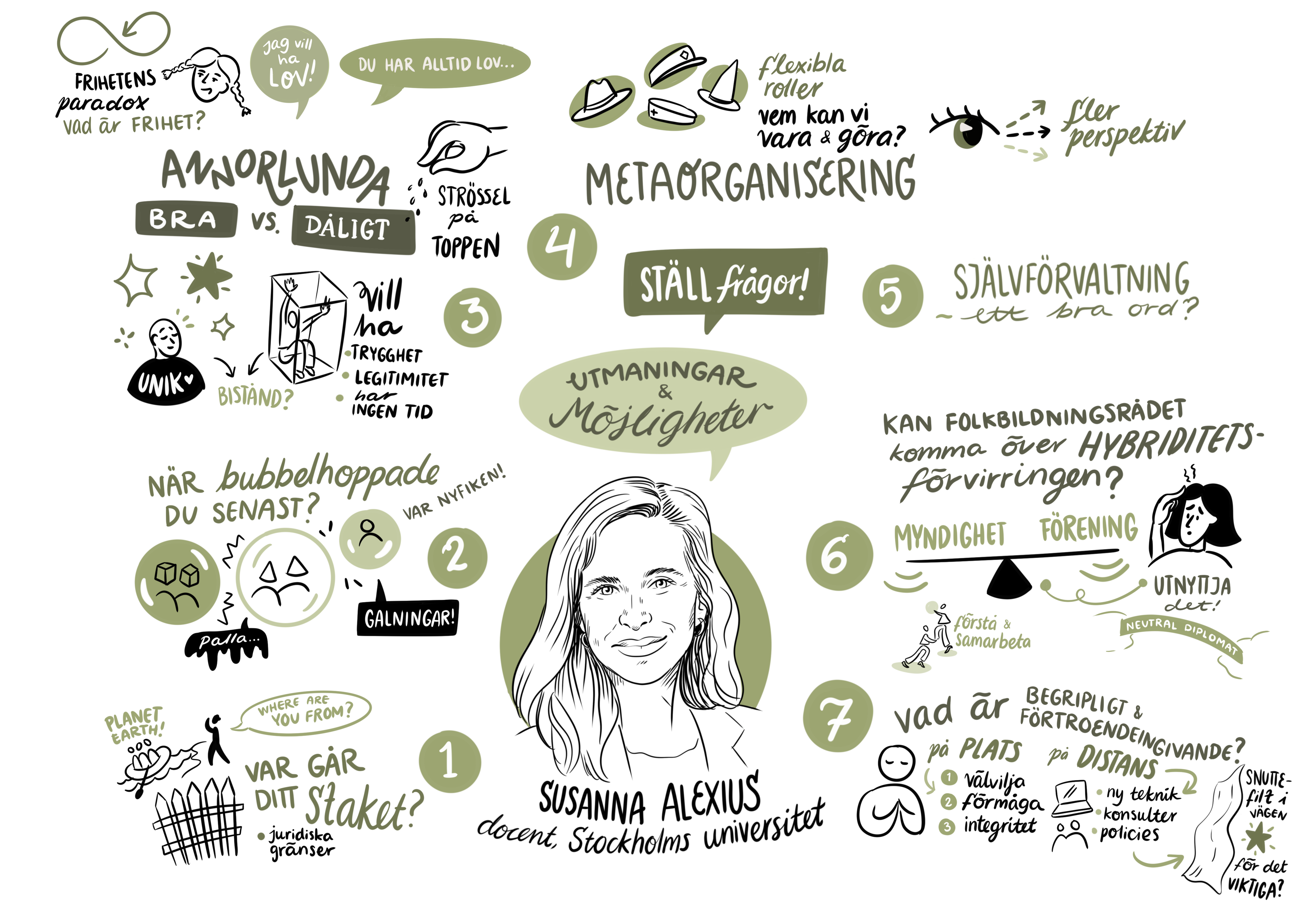 Sedan följdes ett föredrag av Susanna Alexius – docent vid Stockholms universitet, som delade med sig av sin forskning kopplad till styrning och organisering.